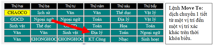 2.1. Lệnh di chuyển một tiết trên TKB từ vị trí này sang vị trí khác (gọi là lệnh Move To).