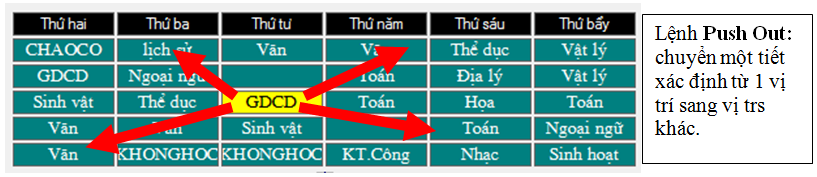 2.2. Lệnh giải phóng 1 tiết trên TKB: chuyển tiết này sang một vị trí khác bất kỳ (gọi là lệnh Push Out).