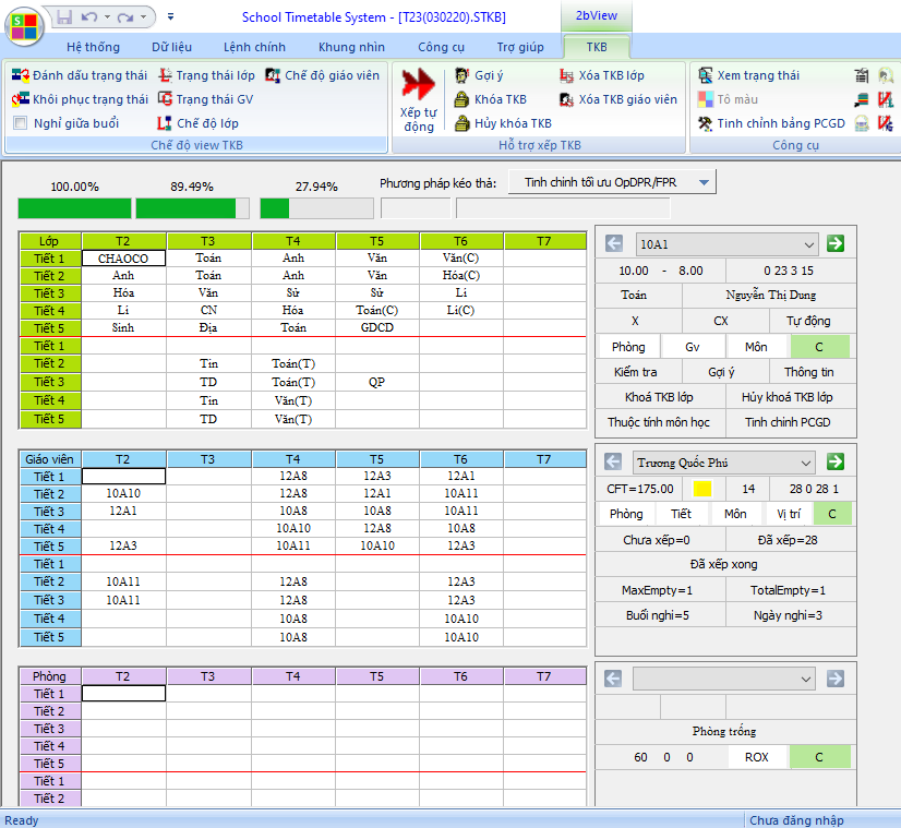 1. Xếp tự động hoàn toàn (100%) thời khóa biểu.