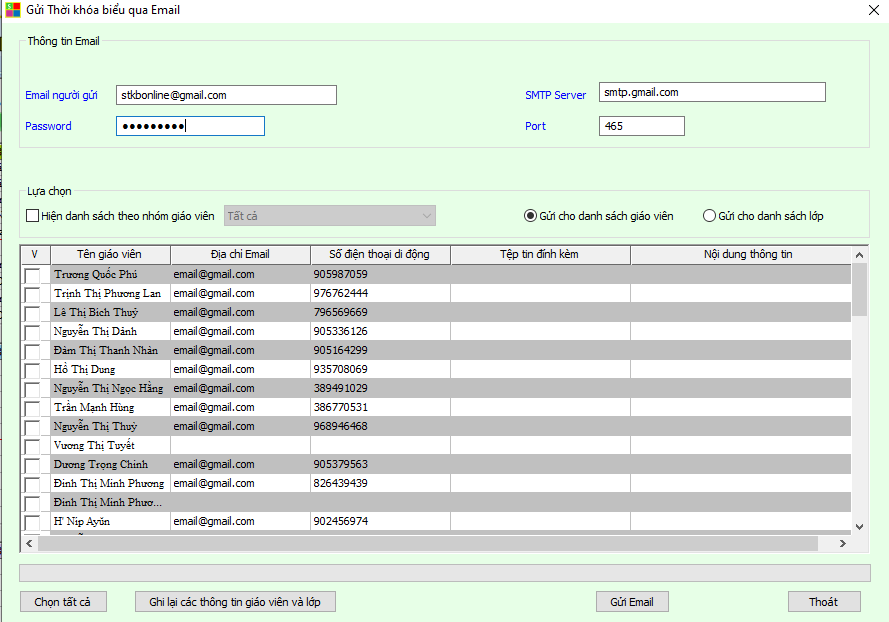 STKB có chức năng gửi thông tin thời khóa biểu tất cả các giáo viên và học sinh trong nhà trường thông qua thư điện tử hoặc tin nhắn của điện thoại di động.